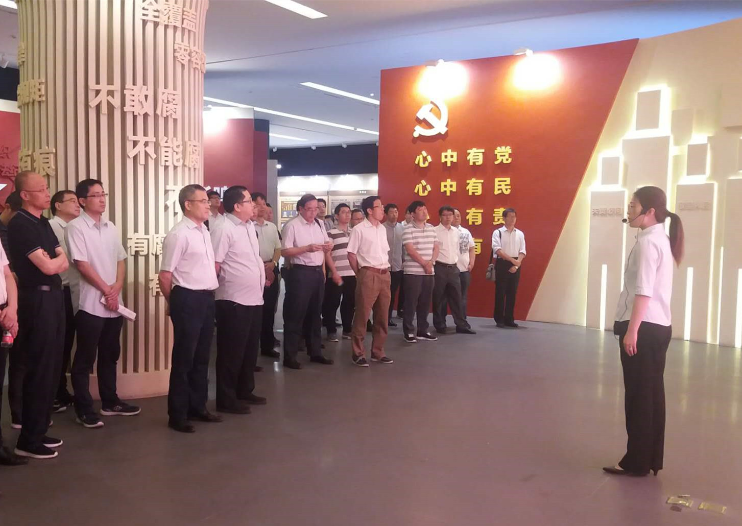 在講解員的帶領(lǐng)下,大家分別參觀了序廳、成果廳、警示廳和尾廳。成果廳集中展示了黨中央推進(jìn)全面從嚴(yán)治黨的戰(zhàn)略部署和在天津市的具體實(shí)踐。警示廳深刻剖析了天津市查處的各類典型案例,通過圖文、視頻、實(shí)物等呈現(xiàn)形式,深層次展示了黨的十八大以來(lái)中央和天津市委關(guān)于黨風(fēng)廉政建設(shè)和反腐敗斗爭(zhēng)取得的偉大成就,用反面典型警示告誡,通過多形式多維度的觀感和視覺體驗(yàn),讓參加反腐倡廉警示教育的人員從思想和靈魂上接受了一次深刻的法紀(jì)教育洗禮,給人以心靈的感染和啟迪。